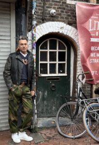 RA beside a very old door in Eindhoven City Centre from when folks were just a little bit more slight