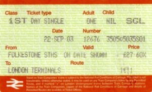 The first time I picked up the fast train from Charing Cross to Folkestone Central was in 2003 after spending a night at The Ritz London. Off-Peak. Empty carriage. Arrived in Folkestone in less than 1 hour. It was just the nicest way to travel to Kent’s seaside. At the top of this post you’ll see my outbound ticket from Charing Cross that year. I’ve kept it in my archive 17 years on.