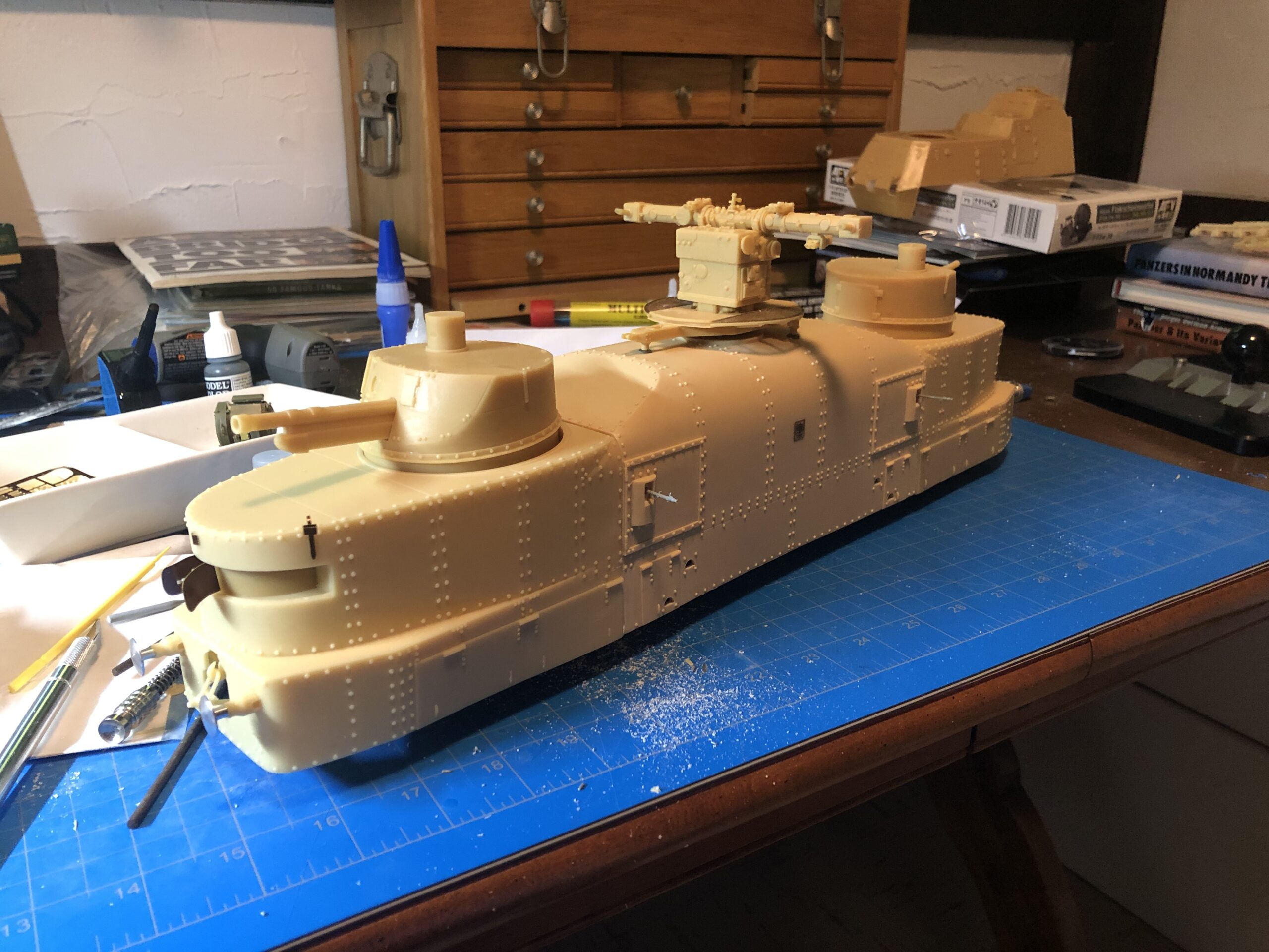 So then, it’s been great. I’ve always wanted to build an armoured train. A line of them on a siding. Perhaps a fictional gold train in the closing months of the war. I have the kits I need in my stash. I’ve had them for ages. Two resin kits by 5 Star Models (Jadar) and two original 1997 Dragon versions of the Draisines. I’ve got three of the four models built in the last six months, and whilst sitting amidst the sprues, Aber photo etch frets and open cardboard boxes an old familiar smell arose.
