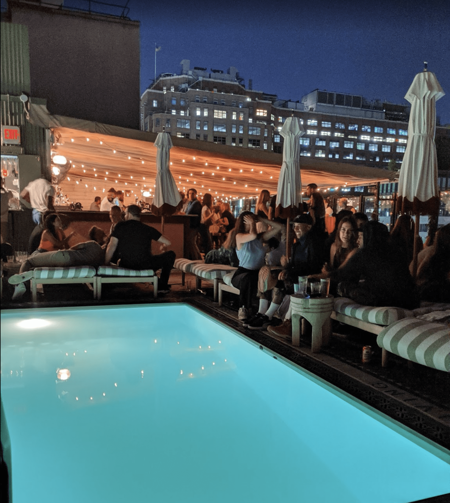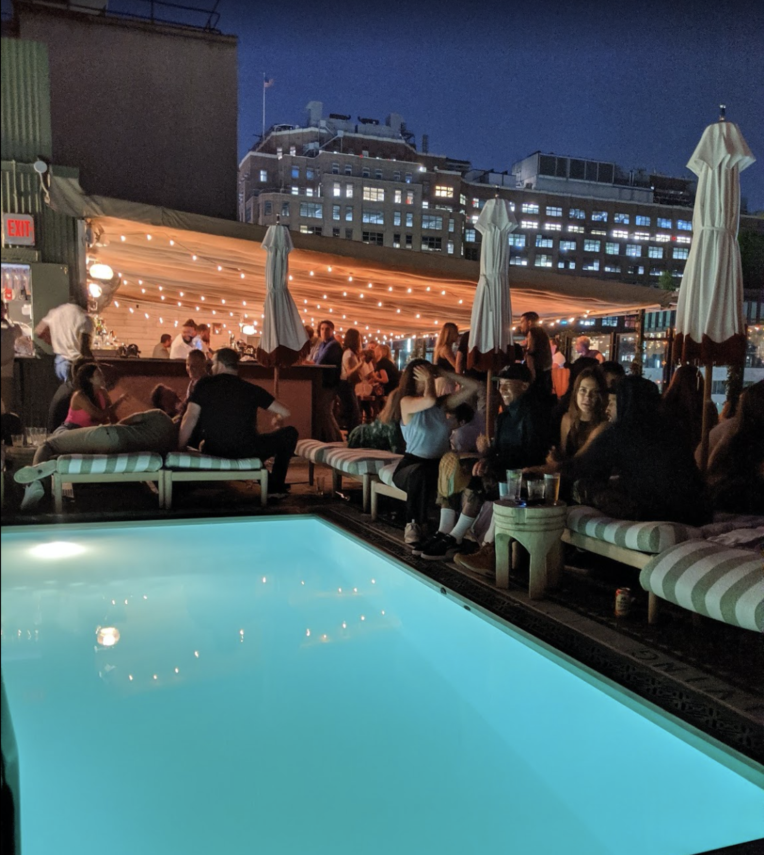 Just to clarify in my head. I could float about a rooftop pool in a fashionable part of New York City on a sweltering August evening? I cold sip cold drinks whilst on said float? And I could watch my favourite film of all time about a big fish that eats people in 1970’s Amityville?